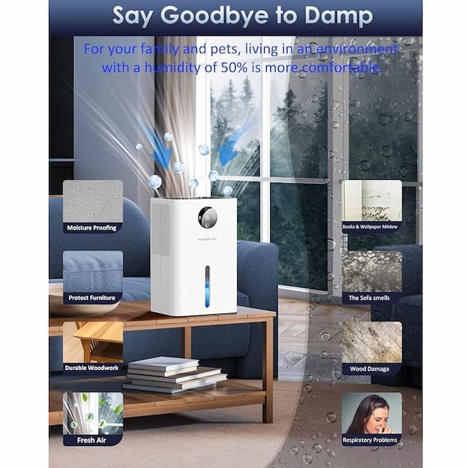 【کاربردهای گسترده】رطوبتگیرهای با راندمان بالا برای خشک کردن لباسها، شما را از رطوبت خانه دور نگه میدارد. اندازه جمع و جور و دسته داخلی در پشت دستگاه، حمل رطوبتگیر را به هر مکانی آسان میکند و به شما کمک میکند رطوبت اضافی هوا را در اتاق خوابها، اتاقهای نشیمن، کمدها، آشپزخانهها، RVها، گاراژها و دفاتر از بین ببرید.