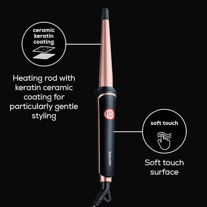 میله گرمایش مخروطی با پوشش سرامیکی کراتین، حالتدهی ملایمی را امکانپذیر میکند.