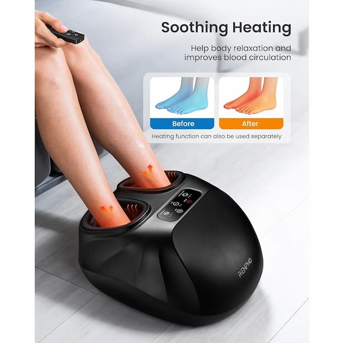 دستگاه ماساژور پا حرفهای واجد شرایط FSA HSA - با طراحی ارگونومیک، ماساژور پا RENPHO ماساژی جامع و راحت را برای هر مشتری فراهم میکند. مجهز به توپهای چرخشی، میلههای غلتکی، گرمایش، پنل و کنترل از راه دور، سریهایی برای ماساژ نواحی بیشتر پا برای ماساژ شیاتسوی ارتقا یافته و راحت.