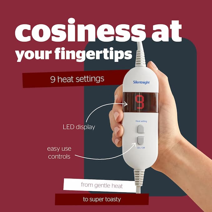 با خیال راحت استراحت کنید: دارای محافظ حرارت بیش از حد برای آرامش کامل است. Silentnight Heat Throw با طراحی منحصر به فرد و کانالهای دوخته شده از ایجاد نقاط داغ خطرناک جلوگیری میکند، به علاوه برای ایمنی بیشتر، پس از ۲ ساعت به طور خودکار خاموش میشود.