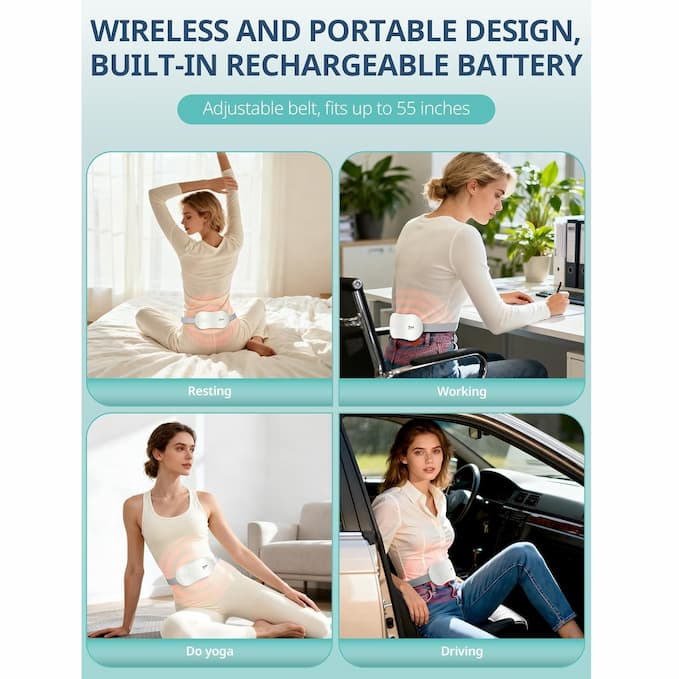 تسکین درد و گرفتگی عضلات قاعدگی: این پد گرمایشی برقی بیسیم با بهرهگیری از جدیدترین تراشه گرمایشی گرافن، تنها در ۵ ثانیه گرم میشود و گرمای ایمن و پایداری را به بدن شما منتقل میکند. گرمای مداوم شما را احاطه کرده و گرفتگی عضلات و کمردرد را تسکین میدهد.
