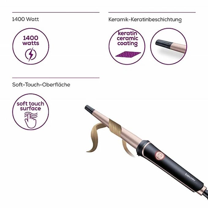 میله گرمایش مخروطی با پوشش سرامیکی کراتین، حالتدهی ملایمی را امکانپذیر میکند.